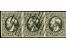 10 c. deep black in horizontal strip of 3, large margins, neatly cancelled by circle of bars of Luxemburg, very fine, sign. Goebel and certificate Böttger BPP (2017)