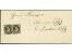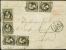 10 c. black, 3 vertical pairs, 2 values slightly touched at one side, otherwise all with good to wide margins, tied by circle of bars to part paid double-rate lettersheet (2 side flaps missing) with a...