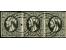 10 c. black, horizontal strip of 3, the left stamp clear at top, otherwise good to large margins, used with 2 clear targets of Redange, fine, certificate Demuth BPP (1998)