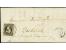 10 c. black with large margins, used on lettersheet with part of contents, dated "1854 Mondorf", showing on front blue "P" in circle, addressed to Luxemburg, here the stamp was cancelled by circle of ...