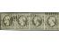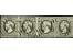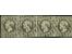 10 c. grey-black, horizontal strip of 4 with good to large margins, used with circle of 9 bars; small scissors' cut between the central stamps, otherwise very fine, a scarce strip, several signatures ...