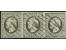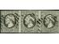 10 c. grey-black, vertical strip of 3 with good to large margins, small sheet margin at right, cancelled by circle of 9 bars, very fine, sign. Goebel and certificate Böttger BPP (2017)