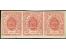 12½ c. rose, horizontal strip of 3, nice fresh colour and ample to mostly large margins with small sheet margin at right and bottom; in the margin at right a small thinning and in the bottom margin at...
