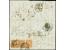 1828, folded letter from Rio via Lisbon to Genoa with oval red transit mark applied in Portugal, then overland in Spain und France with black straight-line "ESPAGNE POR ST JEAN DE LUZ" and "NIZZA MARI...