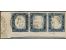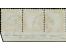 10 cmi. bistre, horizontal strip of three with lower sheet margin and ‘riga di colore’, imperforated at base, with clear c.d.s. "LIVORNO 16 GIU 62". Very fine. An extremely rare and most attractive mu...