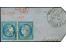 1871, Cérès 25 c. blue, two horizontal pairs of fresh colours, neatly tied by large dotted lozenge “5118” alongside cds. “YOKOHAMA Bau FRANCAIS 16 M(ARS) 74” to small cover to Paris, reverse arrival c...