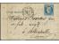 25 c. blue, Type I, fresh colours, displaying the major plate flaw from position 146 (pane A2, the scarce 7th state), neatly tied by large dotted lozenge “574” to folded entire to Paris with cds. “BOU...
