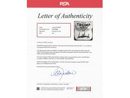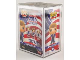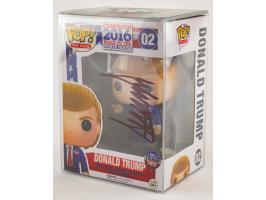 Scarce Funko Pop! vinyl figurine of Donald Trump produced as part of the 'Campaign 2016: Road to the White House' series, housed in its original 4.75˝ x 6.5˝ x 3.5˝ box, boldly signed on the window in black felt tip by Trump. In very fine condition. Accompanied by a full letter of authenticity from PSA. An unusual, highly collectible format for Donald Trump's autograph.