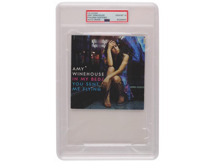 In My Bed / You Sent Me Flying' CD booklet signed on the front cover in blue felt tip, "Amy, x." In very fine condition. Encapsulated and graded by PSA/DNA as "GEM MT 10." Accompanied by a full letter of authenticity and grading from PSA/DNA, and a full letter of authenticity from REAL.