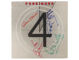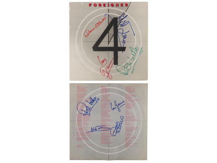 4 album by Foreigner, signed on the front cover in multi-colored felt tip by Lou Gramm, Dennis Elliott, Mick Jones, and Rick Wills, all of whom have also signed the inner album sleeve in blue felt tip. In overall fine condition. The record is included. Accompanied by a full letter of authenticity from REAL.