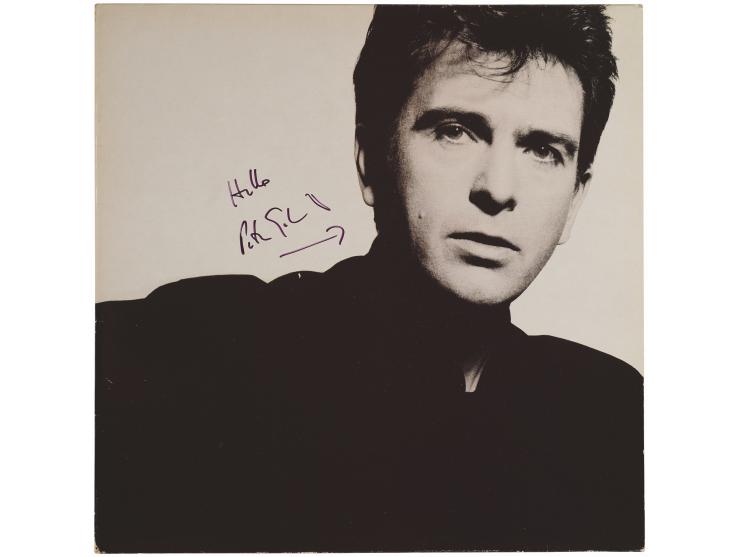 So album by Peter Gabriel, signed on the front cover in black felt tip, "Hello, Peter Gabriel," who draws an arrow to his image. In fine condition. The record is not included.