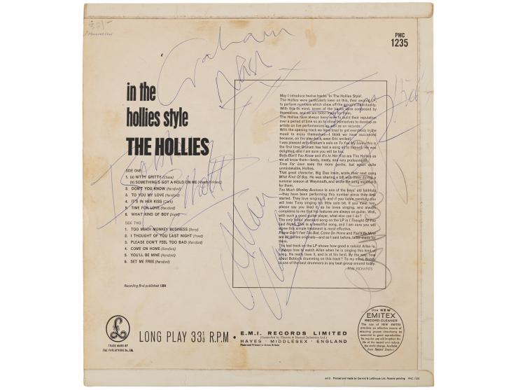 In the Hollies Style album by The Hollies, signed on the back cover in ballpoint by Graham Nash, Bobby Elliott, Allan Clarke, and Tony Hicks, and in pencil by Eric Haydock. In very good to fine condition, with light staining and soiling to the signed side. The record is included.