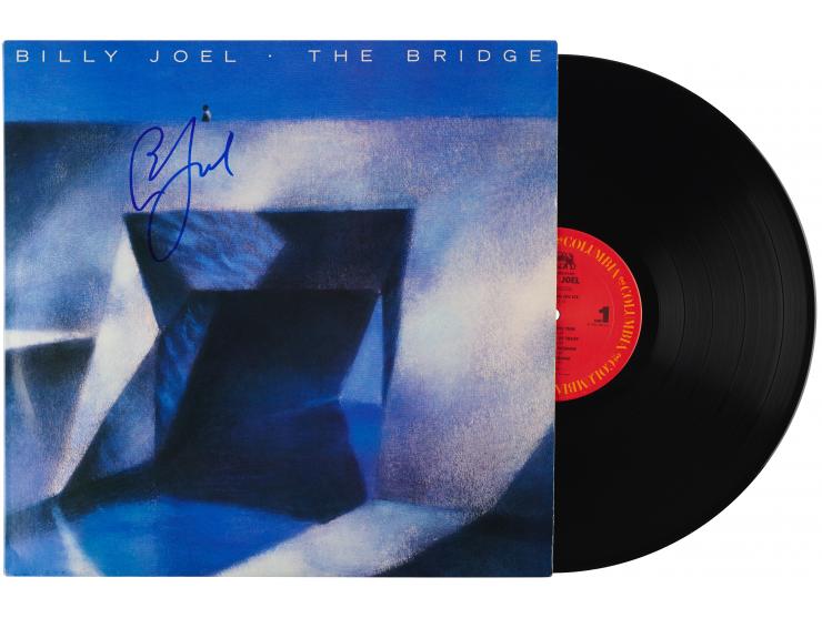 The Bridge album signed on the front cover in blue felt tip by Billy Joel. In very fine condition, with a Beckett label affixed to the back cover. Accompanied by a full letter of authenticity and grading from Beckett Authentication Services, evaluating the autograph as a "10." The record is included.