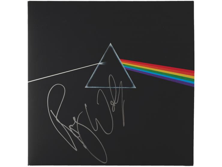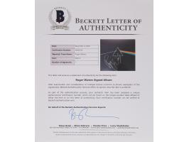 Dark Side of the Moon album signed on the front cover in silver ink by Pink Floyd co-founder Roger Waters. In very fine condition, with a Beckett label affixed to the back cover. Accompanied by a full letter of authenticity from Beckett Authentication Services. The record is included.