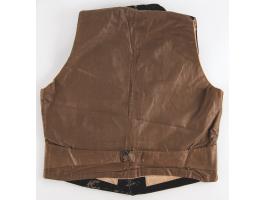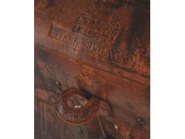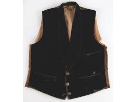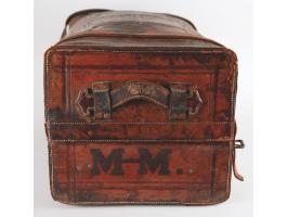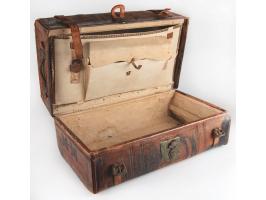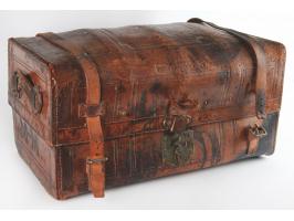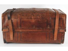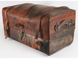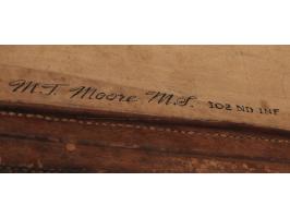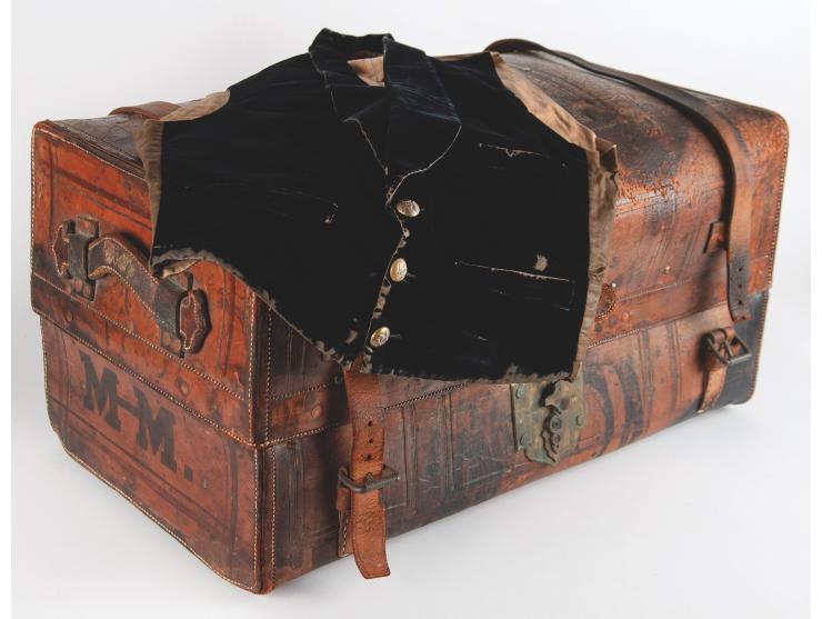 Two items attributed to the Civil War service of Assistant Surgeon Marshall T. Moore of the New York 102nd Infantry Regiment, including: a large leather trunk, measuring approximately 26.5˝ x 13.5˝ x 16˝, with the physician's initials stenciled on the left panel, "M—M.," his name inked inside the lid, "M. T. Moore, M.S., 102nd INF," and the cover blindstamped "Warranted Sole Leather"; and Moore's plush velvet vest, inked on the inside pocket, "M. T. Moore," with three coat-sized eagle buttons on the front. In overall good to very good condition, with heavy wear to the trunk, including splits to the leather straps. Moore enlisted on June 19, 1863, and was present at the Battle of Gettysburg.