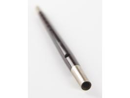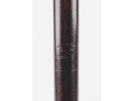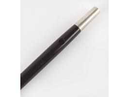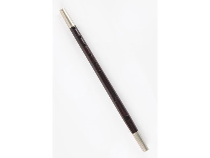 Handsome rosewood fife that measures 15 1/2" in overall length, with tapered 2" nickel steel ferrules at either end. The body measures a little over 3/4" at its widest part (the swell just before the embouchure hole). The fife is stamped with the maker and model names a little further down the tube: "GEO. CLOOS / GC / CROSBY." There are some minor handling marks and scratches present on both the wood body and metal ferrules. These "CROSBY" marked fifes were made in the style of noted Boston instrument maker Walter Crosby and were first made for the Boston market by New York City maker George Cloos sometime around 1884, when the first printed advertisements for this model fife appeared in Boston newspapers. This example is in excellent condition overall.