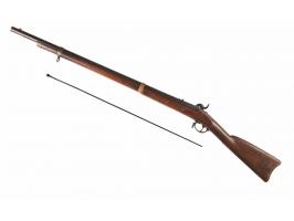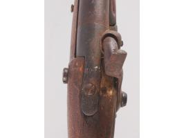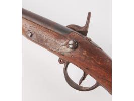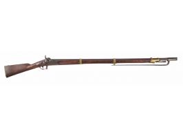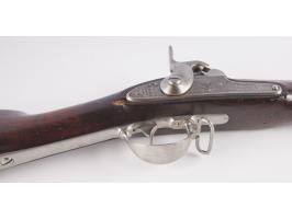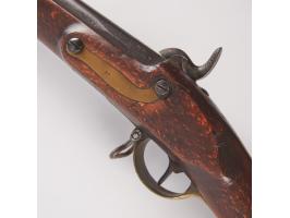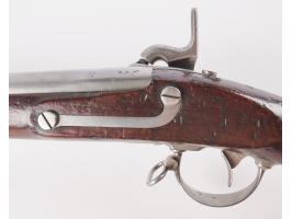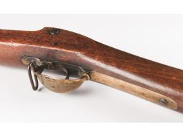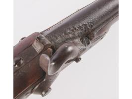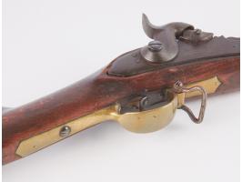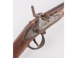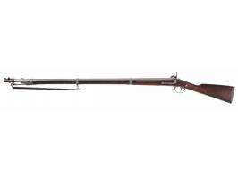 These Prussian muskets were stop-gap weapons imported to arm the hastily assembled volunteer regiments mustered into service by both sides at the start of the Civil War. As US arms production ramped-up, these flintlock conversions were relegated to garrison duty or storage. This example is in fair-good condition overall. Antique.