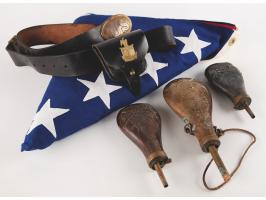 American Flag (50 Star) by Valley Forge Flag Co., with Civil War Belt (Reproduction) and Antique Powder Horns (4)