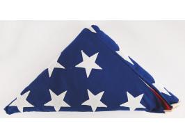 Vintage 50-star United States flag by Valley Forge Flag Co. (post 1959), approximately 115˝ x 56˝, machine-sewn and made of cotton, with 50 double-appliqued cotton stars, and metal grommets on the header, which bears the “Valley Forge Flag Company” manufacturing label. Included with the flag is a reproduction Civil War Union belt and cap box, approximately 45˝ in length, with a reproduction New York Militia cap badge, and a lot of three vintage reproduction metal powder horns from the mid-to-late 20th century. In overall very good condition.