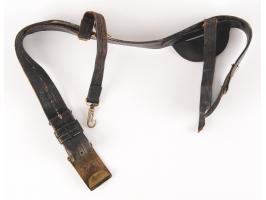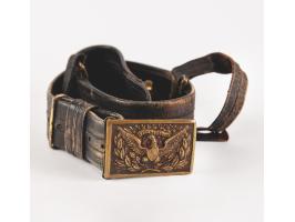 Civil War Union Officer’s leather belt, approximately measuring 34˝ in length, with a brass-tone Union officer’s ‘Eagle’ belt buckle. In very good condition, with various wear to leather.