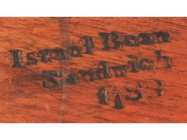 The right side of the buttstock has "ISRAEL BEAN / SANDWICH / 1788" stamped into the wood near the heel of the butt, and has had black ink added at some point for legibility. This could be a reference to either Sandwich, MA, or Sandwich, NH, both of which had established families named Bean. A search of records yields little information, but there was an Israel Bean who served as a Private in the 2nd Regiment (Holland’s) of the Massachusetts Militia during the War of 1812; and a birth record from Sutton, NH, for a Milton Bean, son of Israel Bean, dated September 11, 1814.