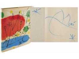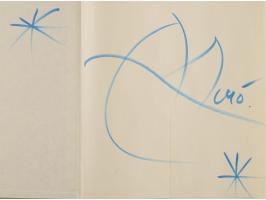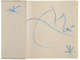 Signed book: Joan Miró by James Thrall Soby. First edition. NY: The Museum of Modern Art (MoMA)/Doubleday & Company, Inc., 1959. Hardcover with dust jacket, 8.75 x 9.5, 164 pages. Prominently signed on the first free end page in blue felt tip by the artist, "Miró," adding two starlike asterisk sketches. In fine condition, with a light strip of toning to the center of the signed page.