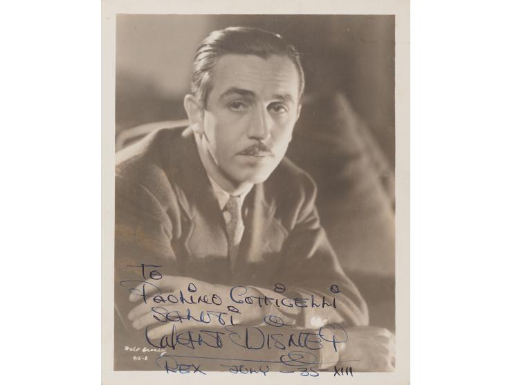 Spectacular vintage matte-finish 8 x 10 photo of the youthful Walt Disney, signed and inscribed in fountain pen, "To Paolino Cotticelli, Saluti, Walt Disney, Rex July—35—XIII.” In very fine condition.