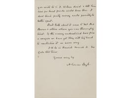 This letter dates to the final chapter of T. E. Lawrence’s life, when the famed 'Lawrence of Arabia' was living quietly following his celebrated—and controversial—role in the Arab Revolt. Having retreated from public life into the ranks of the Royal Air Force under the name T. E. Shaw, Lawrence carefully guarded his privacy while maintaining select friendships within Britain’s political and diplomatic circles.