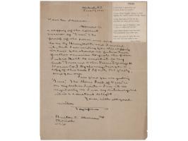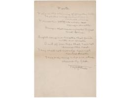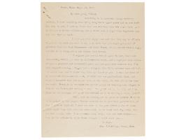 I'd like to take this opportunity to thank you again for the little book of poems you sent me. I and my friends have found them most interesting, and, as you can imagine, most heartbreaking." In fine condition, with a few small stains.