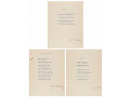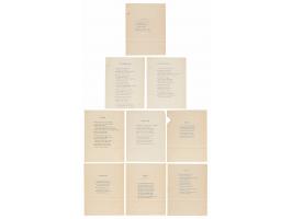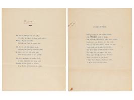 Two typewritten poetical manuscripts by Ernest Hemingway, totaling ten pages, 8.5 x 11, Ritz Hotel, Paris, September 1944. The second poem is signed in pencil on page 7, "un-read, un-corrected, E.H.," and bears additions written by Hemingway on pages 2 and 6.