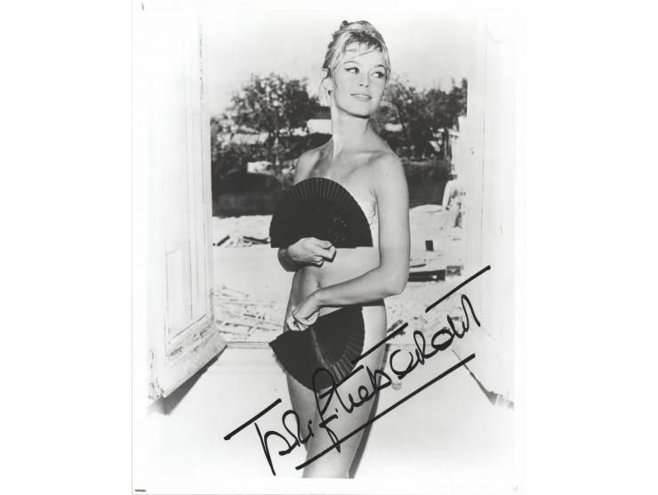 Glossy 8 x 10 the naked Brigitte Bardot covering herself with just two small hand fans, signed in black felt tip. In fine condition, with a Beckett label affixed to the reverse. Accompanied by a certificate of authenticity from Beckett Authentication Services.