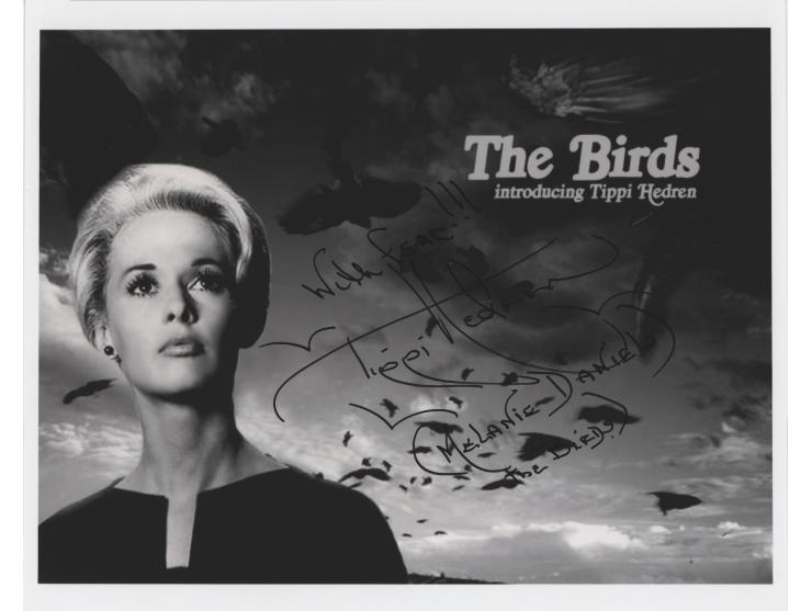 Glossy 10 x 8 photo of Hedren in the classic 1963 Alfred Hitchcock thriller The Birds, signed in black felt tip, "With fear!!! Tippi Hedren, (Melanie Daniels, The Birds)." In fine condition.