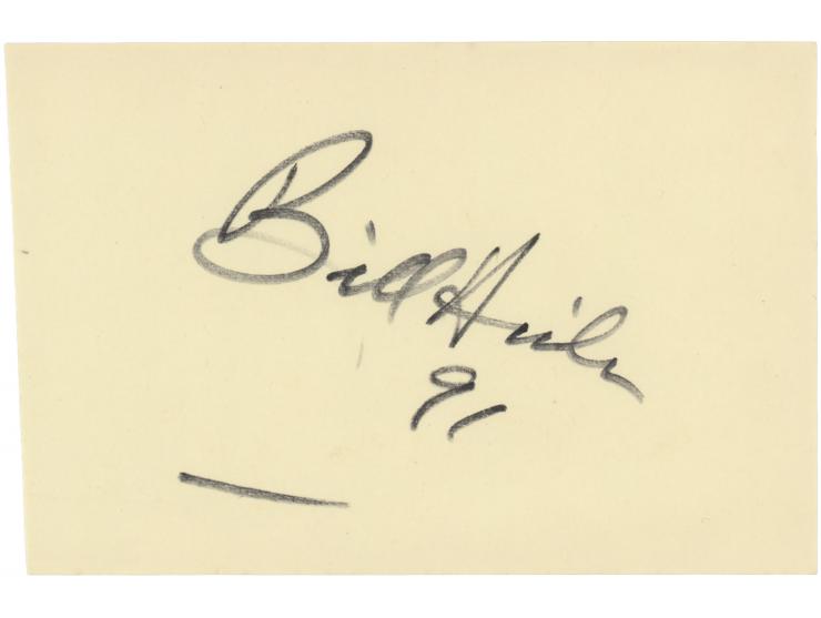 Scarce felt tip signature, "Bill Hicks, 91,” on a light yellow 4.5 x 3 sheet. In fine condition.