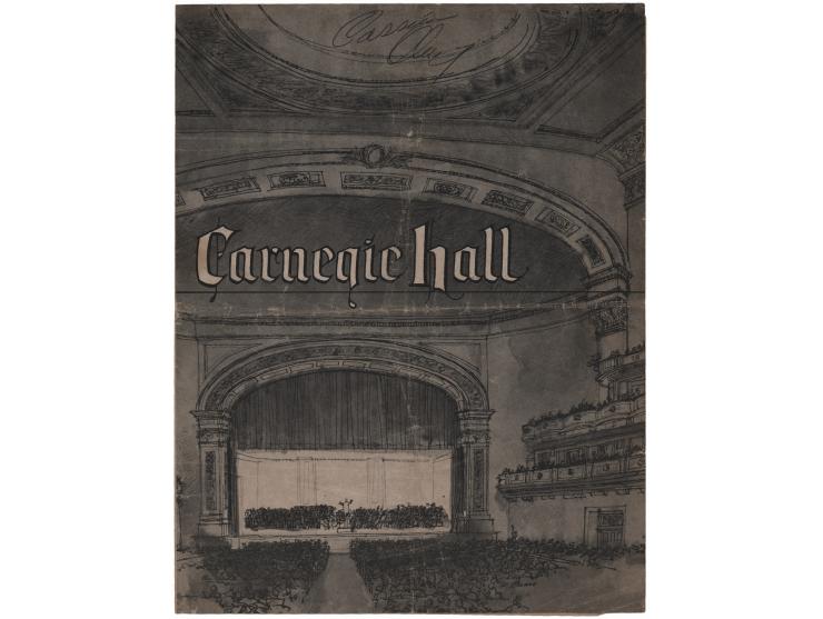 Original 8.5 x 11 program for the "Delta Sigma Theta Sorority, Inc. Golden Anniversary Convention," held at Carnegie Hall from August 11–17, 1963, signed on the front cover in ballpoint, "Cassius Clay." In very good condition, with overall creasing, handling wear, and multiple intersecting folds.