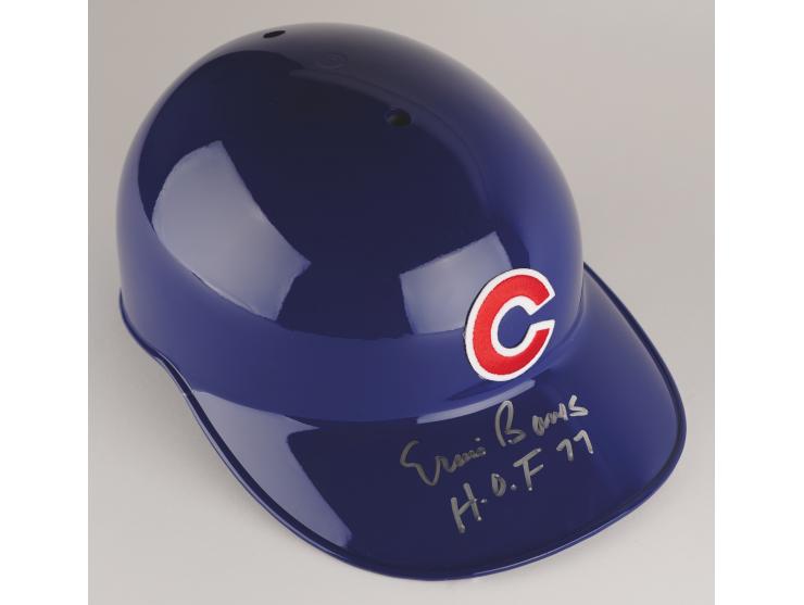 Official Rawlings Chicago Cubs batting helmet, signed on the bill in silver ink, "Ernie Banks, H.O.F. 77." In very fine condition, with a Beckett authentication label affixed to the rear.