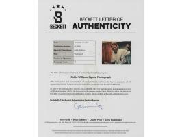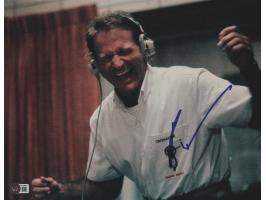 Color glossy 14 x 11 photo of Robin Williams as AFRS DJ Adrian Cronauer in the 1987 war comedy Good Morning, Vietnam, signed in blue felt tip. In very fine condition, with somewhat grainy image quality and a Beckett label affixed to the lower right corner. Accompanied by a full letter of authenticity and grading from Beckett Authentication Services, evaluating the autograph as a "10."