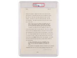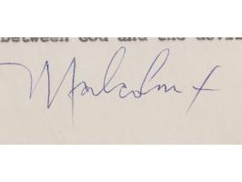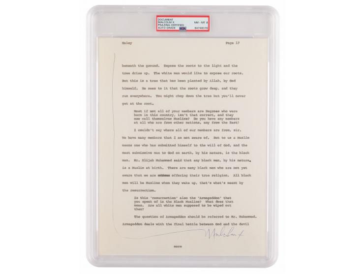 [Malcolm X] The question of Armageddon should be referred to Mr. Muhammad. Armageddon deals with the final battle between God and the devil…” In very fine condition. Encapsulated and graded by PSA/DNA as “NM - MT 8.”