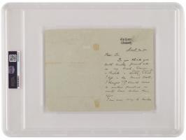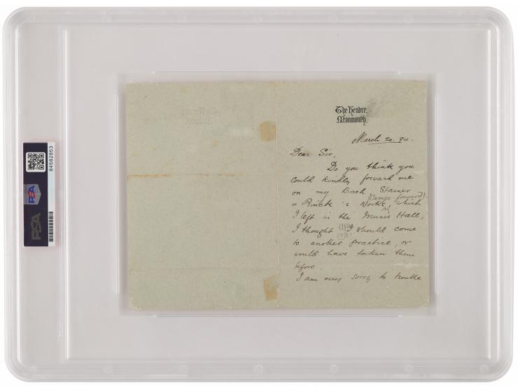 Scarce ALS signed “C. S. Rolls,” one page both sides, 4 x 6, The Hendre letterhead, March 20, 1894. Handwritten letter to a gentleman, in part: "Do you think you could kindly forward me on my Bach Stainer & Rinck's Works, which I left in the Music Hall, I thought I should come to another practice, or would have taken them before." In fine condition. Encapsulated and graded by PSA/DNA as "GEM MT 10."