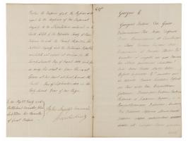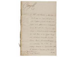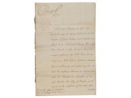 - manuscript DS, signed "George R," one page both sides, 7.75 x 12, September 10, 1802, being a warrant for affixing the Great Seal to Sir John Borlase Warren's full power to "take the necessary measures in conjunction with the minister or ministers of our good brother the Emperor of all the Russias, with regard to the accession of His Imperial Majesty to the stipulations contained in the Tenth Article of the Definitive Treaty of Peace between us and the French Republic, His Catholic Majesty and the Batavian Republic, concluded and signed at Amiens on the Twenty-Seventh Day of March, 1802," with annexed four-page manuscript of the full power's text.