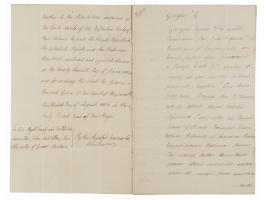 - a manuscript DS, signed "George R," one page both sides, August 30, 1802, being a warrant for affixing the Great Seal to Justinian Casamajor's full power to "take the necessary measures, in conjunction with the Minister or Ministers of our good brother the King of Prussia, with regard to the accession of our said good brother to the stipulations contained in the Tenth Article of the Definitive Treaty of Peace between us and the French Republick, His Catholick Majesty, and the Batavian Republick, concluded and signed at Amiens on the Twenty-Seventh Day of March 1802," with annexed four-page manuscript of the full power's text.