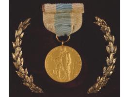 Exceptionally rare Congressional Gold Medal from the Byrd Antarctic Expedition presented to George Hamilton Black, a supply officer on Richard E. Byrd’s famed Antarctic Expedition of 1928–1930. The medal, 1.25˝ in diameter, bears an embossed front design of Admiral Byrd in fur-lined arctic clothing encircled with text: “Byrd Antarctic Expedition 1928-1930.” The edge is engraved “G. Hamilton Black,” and the medal is suspended from a white silk ribbon with a light blue center stripe. The reverse (hidden due to framing) features the sailing ship City of New York, surrounded by dedication text: ‘Presented to the Officers and Men of the Byrd Antarctic Expedition to Express the High Admiration In Which the Congress and the American People Hold Their Heroic and Undaunted Services in Connection With the Scientific Investigation Exploration of the Antarctic Continent.’