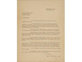 It is internal bitterness caused by fame, ambition, money and jealousy which, after the return home, has destroyed the spirit of most past expeditions. You have not let these things touch you and so I congratulate you and am grateful to you in a double sense. It is often more difficult to keep our sense of balance and proportion in civilization than in the polar regions. It is my confident hope that this spirit will live as a bright page in history. In conclusion, I want to say that whenever you come my way you will receive a warm welcome and the hand of friendship.” Matted together with an engraved plate within its original frame to an overall size of 14 x 21. In overall very good to fine condition.
