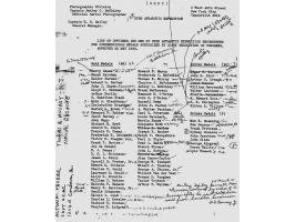 Following congressional authorization, the Navy Department organized a competition to design the medal. Francis H. Packer of New York was awarded the $1,000 prize when the Commission of Fine Arts selected his design from among 16 submissions. The medal measures 1.25 inches in diameter and was struck in gold, silver, and bronze. A total of 81 medals were produced at a cost of $6,560 — 65 in gold, seven in silver, and nine in bronze — and were awarded to members and key participants of the expedition. A modern printed copy of the original list of medal recipients is included, with Black’s name (“G. Hamilton Black”) present in the “Gold Medals” column.