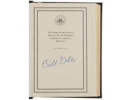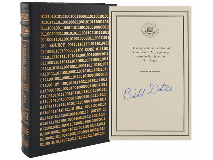 Signed book: Source Code: My Beginnings. Collector's edition. Norwalk, CT: Easton Press, 2025. Leatherbound hardcover, 6.5 x 9.75, 318 pages. Signed on the colophon in blue felt tip by Bill Gates. In very fine condition. Accompanied by a full letter of authenticity and grading from PSA/DNA, evaluating the autograph as a "10."