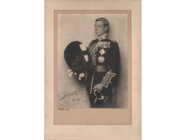 A rare and handsome signed portrait of Edward VIII, who, upon his father's death in 1936, became King of the United Kingdom and the British Dominions, and Emperor of India, from January 20, 1936, until his abdication just 11 months later on December 11, 1936. His decision to renounce the throne to marry the American divorcée Wallis Simpson precipitated a constitutional crisis and brought an abrupt end to one of the shortest reigns in British history. Upon abdication, he was created Duke of Windsor and lived much of his later life abroad. Signed examples dated 1936 as “Edward R. I.”—reflecting Rex Imperator—are especially desirable, as they were produced only during his brief tenure as king and emperor, a period of less than a year.