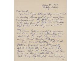 In full: "I wish to extend my congratulations and good wishes on the occasion of your birthday on January 31st. I can not let this opportunity pass without expressing the admiration which I feel not only for your long and successful career in business and for the distinguished public services which you have rendered to your city, state and nation, but above all for what you have been able to accomplish in alleviating suffering, promoting health and saving human life in your own country and throughout the world. You have shown what can be accomplished in a constructive way by a career devoted to the public interests and to the welfare of humanity." Impressively cloth-matted and framed with a portrait and biographical plaque to an overall size of 30 x 18. In fine condition.
