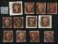 MALTESE CROSS CANCELLATIONS: London Numeral 1-12 struck on twelve 1d. red imperforated, mostly nice and good strikes, some stamps with faults, certificate Pröschold BPP (1988)
