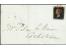 1 d. black, plate 1, LG, good to large margins, tied by red MC to small piece, very fine