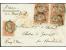 1866 (27 Sept.), Washington 3c. rose, two vertical pairs and single tied by grid cancel to small envelope endorsed "France via New York" to Combrondes, alongside scarce "DETROIT MICH SEP 27 PAID 12" e...