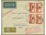 1928, Flugpost 50 Cent und 1 Franc, drei Briefe mit Mehrfachfrankatur 50 Cent, Einzelfrankatur 1 Franc sowie Mischfrankatur 50 Cent und 1 Franc, jeweils mit schwarzem Stempel "SAARBRÜCKEN 2 (BHF) LUFT...